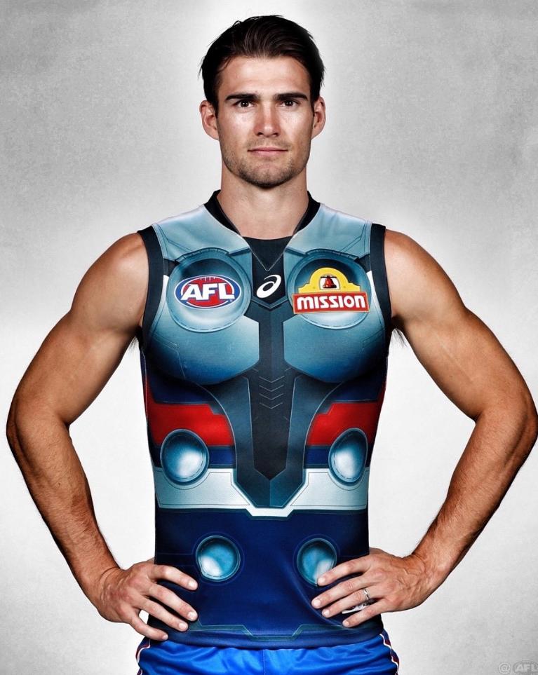 First of all, they’ve decided to wear some gimmicky, marketed at the kiddies Thor jumper for their first ever game at ‘Marvel’ Stadium…