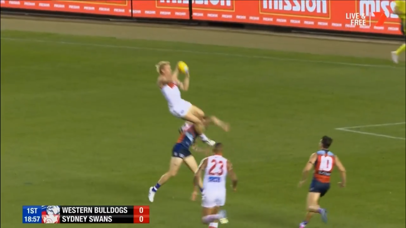 It took just over a minute for the game to explode to life, as Isaac Heeney, fresh of winning the 2018 Mark of the Year, decided to sit Bailey Williams on his back and take another hanger to kick off the year.
