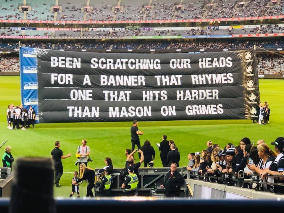It was quite natural to see Pies fans booing Dom Sheed due to his role in the Grand Final (Hm, I wonder what he did), so the Eagles decided to add to the hilarity by recreating that moment, with Ryan taking a towering mark and kicking it to Sheed inside 50, who went back and slotted the sealing goal, and recreated his celebration to boot.