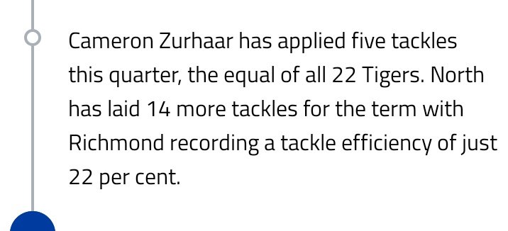 After a relatively even first half, a goal to Mason Wood just before Half-Time proved huge for North’s momentum- After kicking 2.6 for the term, they came out after the half and destroyed the Tigers, kicking 6 goals without a miss, applying the physical blowtorch around the ground, and to be honest, this should sum up how brutal the 3rd Quarter was for the Tigers.