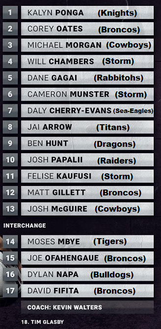 There’s only a few changes from Game Three last season- With Valentine Holmes off in the NFL, Michael Morgan gets a start, Ben Hunt will have the number 9 jumper due to Andrew McCullough’s injury, Matt Gillett (The best a man can get) starts in the second row, Dylan Napa is on the pine, and three debutants will come off the bench- Wests captain Moses Mbye, and Broncos pair Joe Ofahengaue & David Fifita.