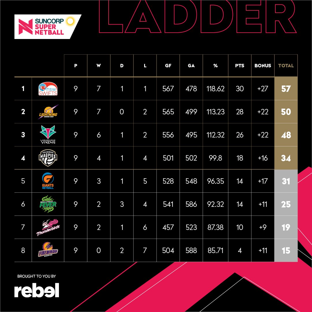 Unlike their AFL counterpart, the Magpies haven’t lost in their two appearances in the Indigenous strip, and they’re now into the Top Four on the back of the Giants’ loss to the Vixens, turning a three point ladder deficit into a three point margin.