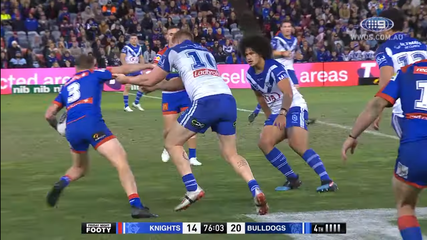 Whether or not he made a difference was unclear, but what was clear was that the sin binning of James Gavet for a hit off the ball on the hour completely changed the game for the Knights, and probably wrecked their Top 4 hopes as well, as the Dogs turned around that 8-nil deficit and rocketed to a 20-8 lead in 15 minutes, giving Mitchell Pearce his worst experience with Dogs since January 2016.