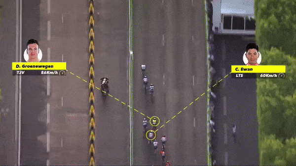 Looking at the overhead shot- Not only did Caleb come from utterly nowhere, he had to cut to the outside and cover more metres than Dylan Groenewegen… AND HE STILL WON!