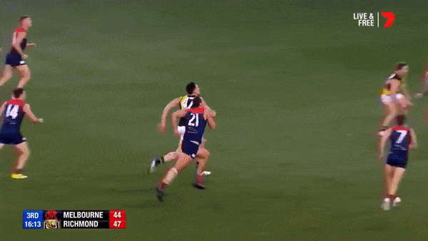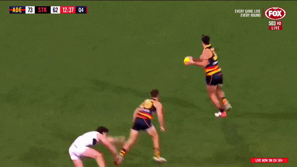 I can hear BT screaming “THAT WAS OUT OF BOUNDS” ad nauseam (Still from AFL.com.au/Fox Footy)