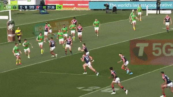 Regardless, the 2nd vs 3rd clash to kick-off Super Sunday delivered as expected, and resulted in the Raiders’ biggest regular season crowd in 9 years, as the Eastern Stand chockers with Cockers, and there were so many subplots on-field, including the battle between an aspiring up and comer in Charnze Nicoll-Klokstad, and James Tedesco… well it’s fair to say the best fullback in the galaxy creamed the young Kiwi, and it wasn’t even a fair fight, with some of the wizardry Teddy was providing.