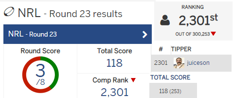Back to the present day, and thanks to a mauling of the most inept band of Knights since the 3rd Crusade, the Tiges are right back in the finals race, sitting in the familiar Wests position of 9th and a game outside of their 4th finals appearance in 20 years.