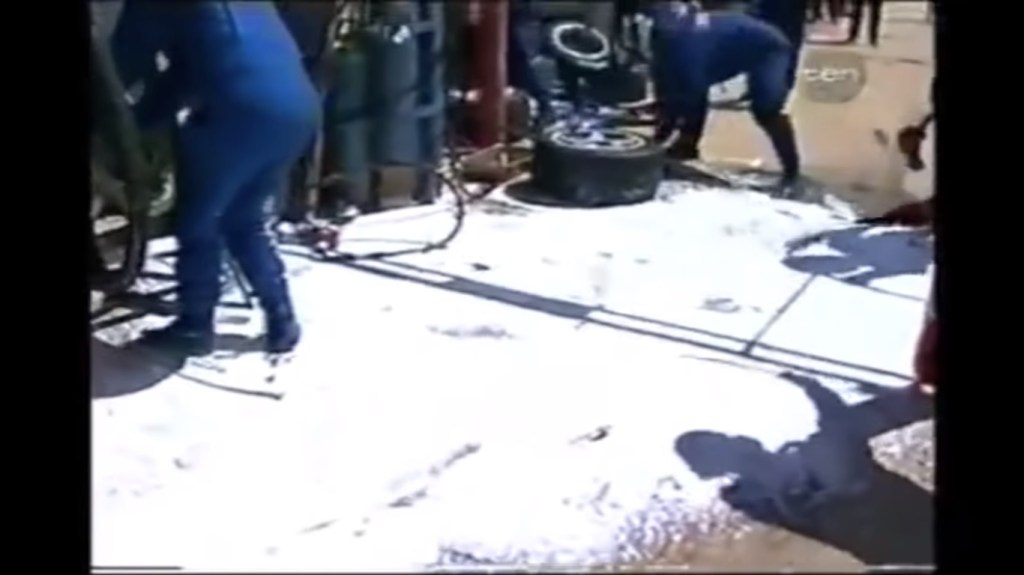 Supposedly when T8 put the wheel on a few laps prior, it either wasn’t attached properly, or suffered a wheel clip failure, which also broke the hub on the right front, and dislodged the tyre rather spectacularly on the pit straight, forcing PD to do an entire lap on 3 wheels.