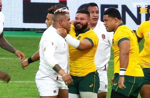To provide some context to this image, the Wallabies had the momentum and won a turnover in the scrum, so Silatolu Latu decided to be a bit of a smart arse and give renowned hot head Kyle Sinckler what was apparently a tap, and most definitely not an asphyxiation attempt.
