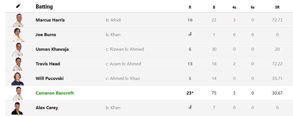 And then, after Shafiq and Azam scored centuries and Pakistan made 428, within 16 overs, Australia were discombobulated and reeling at 6/44, and then 9/57, having lost a very commendable 7/20 in 14 overs, as every possible opening candidate to partner David Warner wet themselves against the second coming of Imran Khan, who I’m pretty sure had a spell of 4 wickets for 1 run.