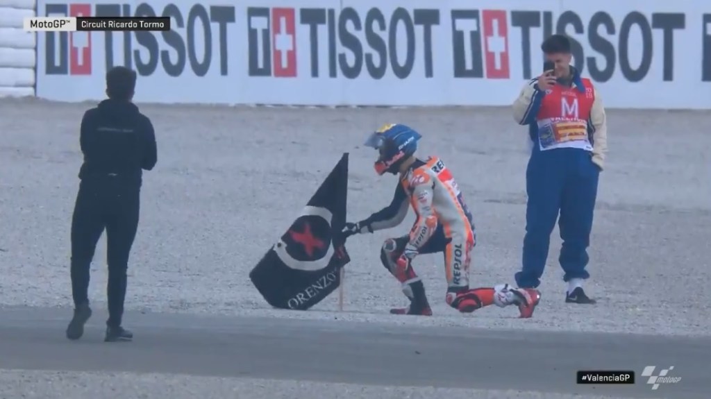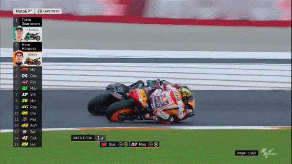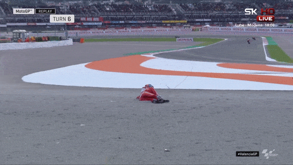 On Lap 12, Marquez went down from 5th at Turn 11, but did rejoin the race, albeit in 31st.