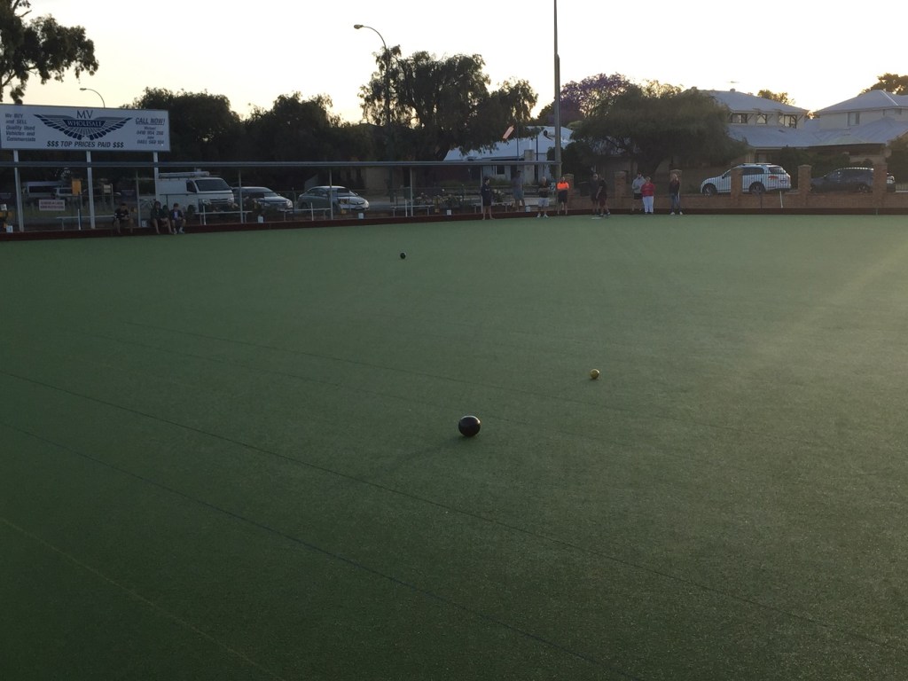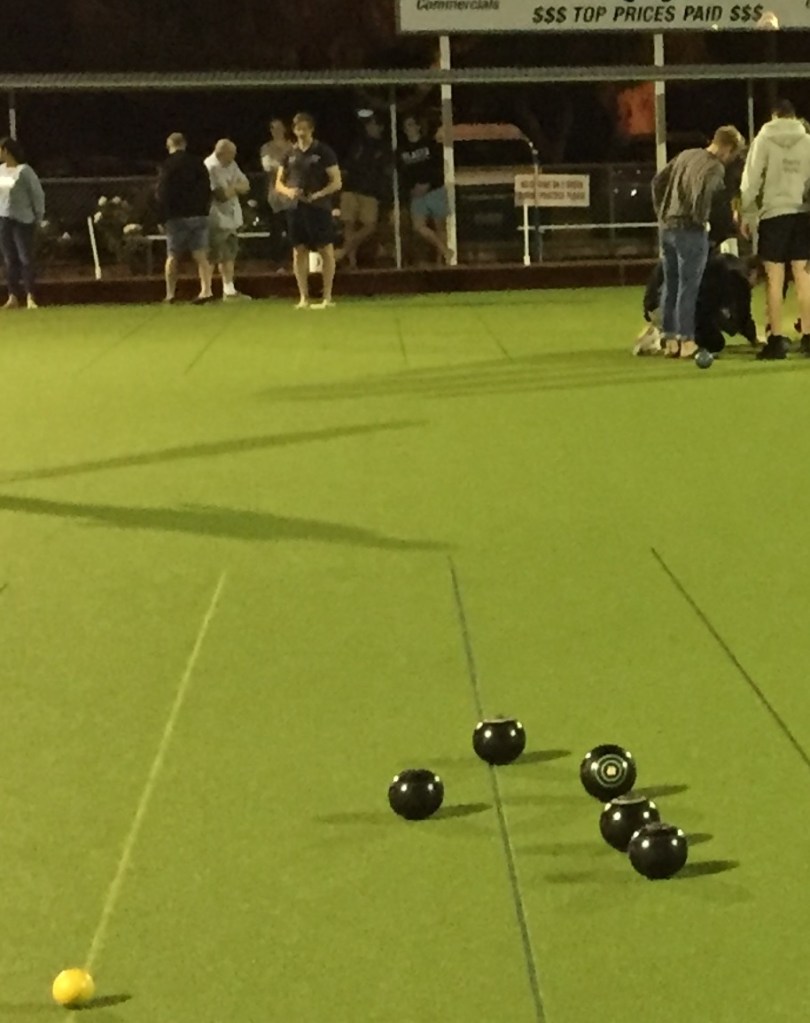 Week 3 of the Twilight Bowls competition at Manning Memorial, and to spice things up before the night began, Half Price organised what was known as the Corner Challenge, where one representative from each team lined up at the far end of the green, the Jack was set in the opposite corner, and simple stuff, whoever was closest to the pin took the cash.
