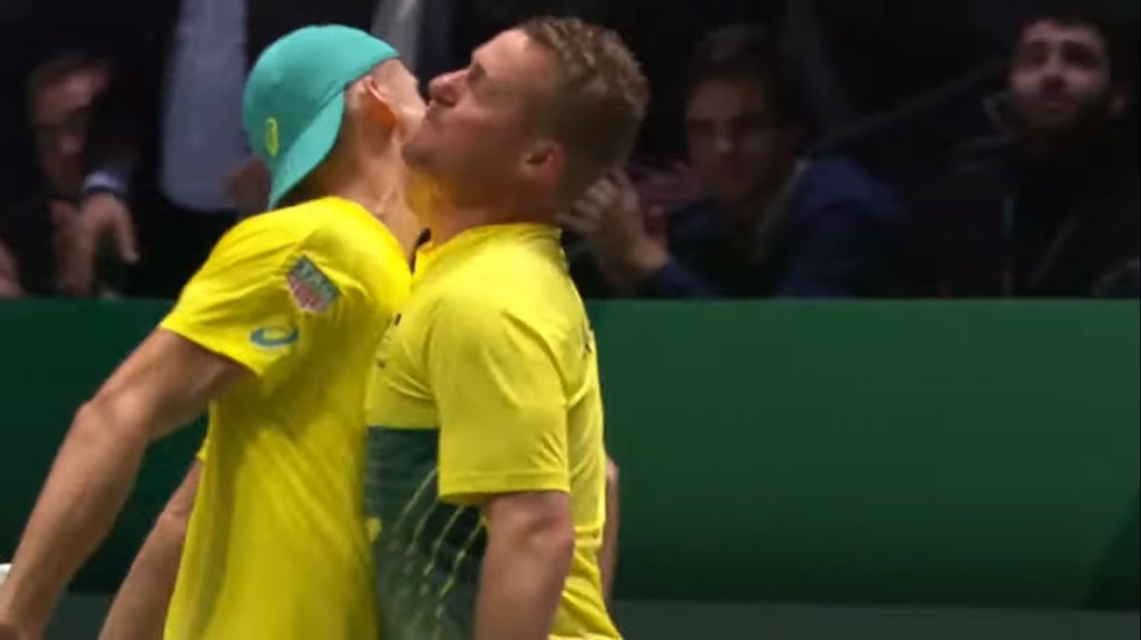 So, the Aussies are 1-0 up, Little Lleyton’s pumped off his tits with adrenaline, as the main singles battle between David Goffin and Alex De Minaur gets ready to take flight in front a fairly pro-Belgian crowd.