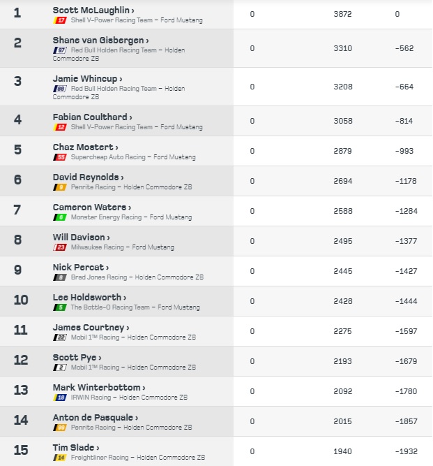 Pye was the performance of the race, starting from dead last and finishing 6th with the best race pace of anyone on track, Courtney beat off Whincup for 7th to deliver another double Top 10 for WAU, and Whincup did indeed hold off Slade for 8th and 9th respectively.