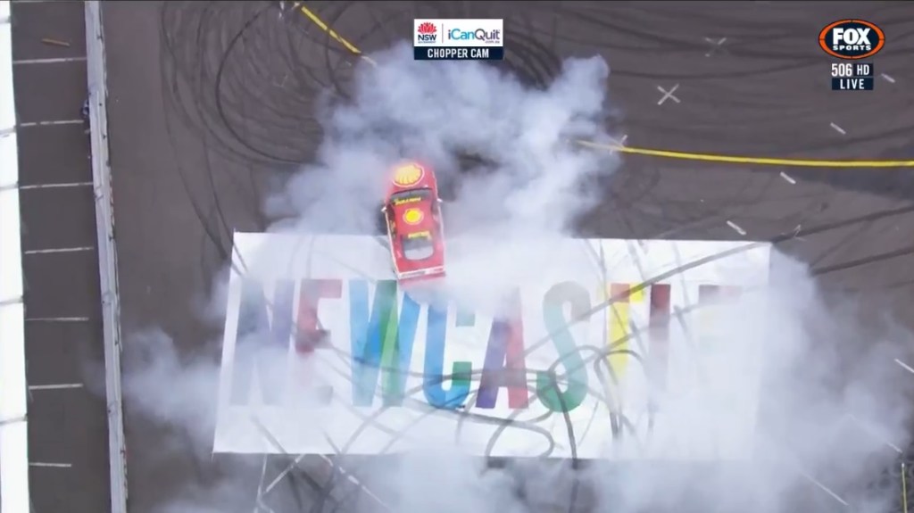 I’m surprised the Newcastle fuzz didn’t book him for a blatant display of hooning, but I suppose they’ve got more pressing matters, like keeping Matthew Johns out of the Hunter.
