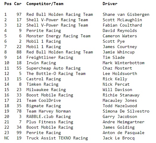 Van Gisbergen pitted on Lap 64 and emerged with a clear lead, and the order was eventually settled, with the Red Bulls 1-2, and the DJR Penske cars 3-4.