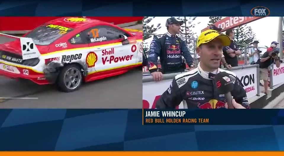 Discussion about container ships ensued until Lap 75, when Whincup locked up and went down the escape road at Turn 1, and from a comfortable Red Bull 1-2, he had dropped to 7th and barely holding off Tim Slade, which had big implications for the teams championship, as the margin on track went from 77 points to 137 points the way of DJR-Penske!