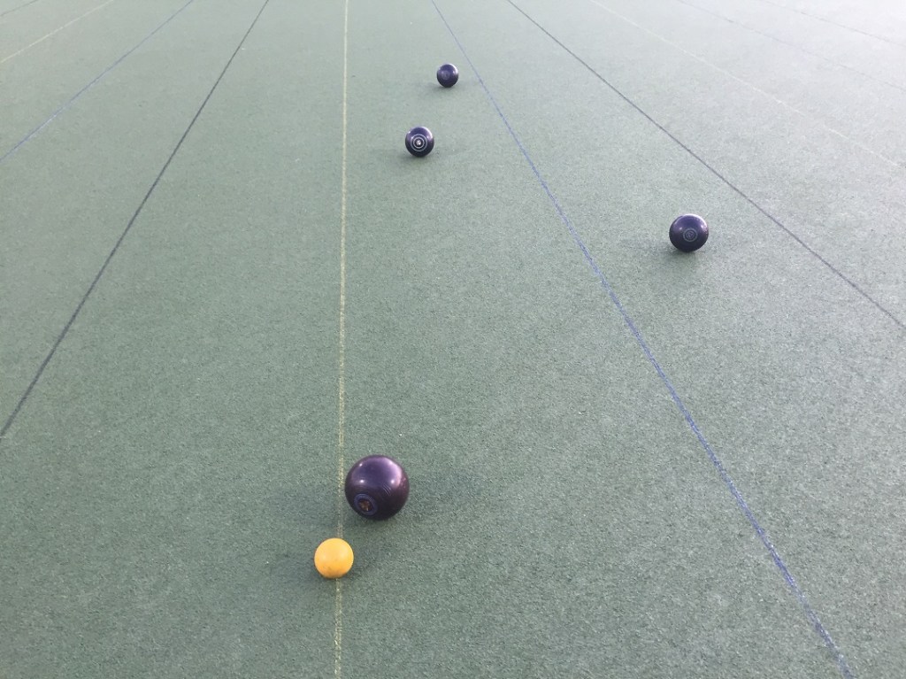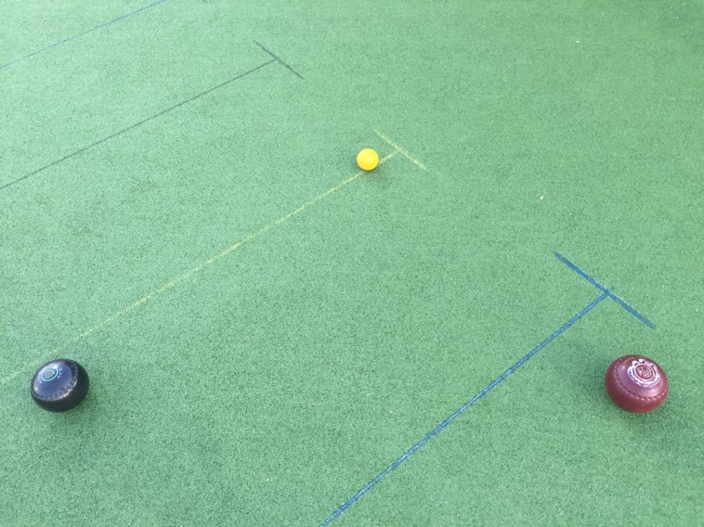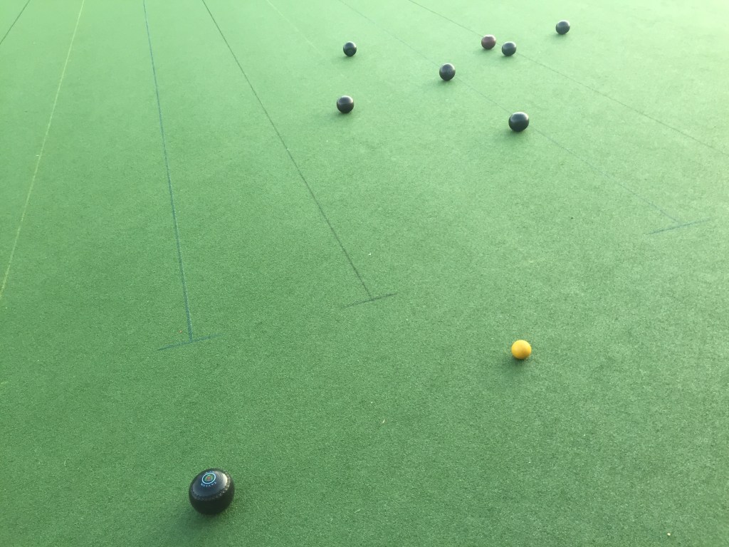 On the first end, Rich bowled a bloody great bowl that would end up right on the jack….