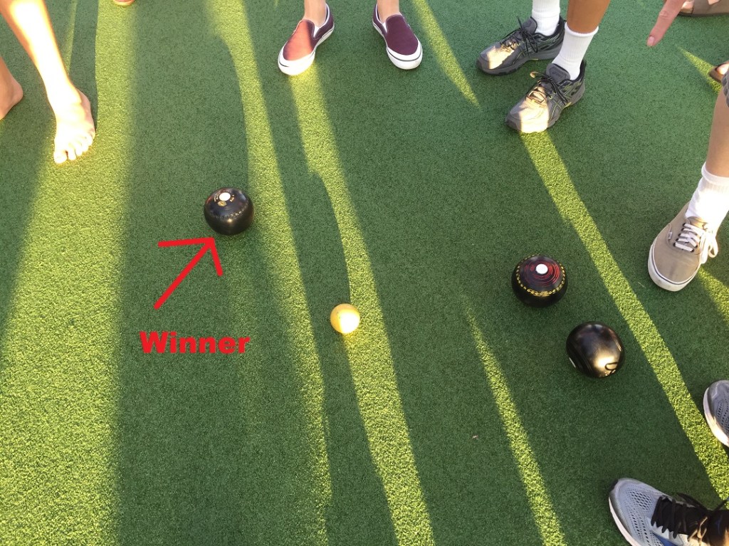 My first shot was alright under the circumstances (Finishing slightly short), and would end up as the temporary holder, but my second shot joined both of Shaun’s shots in the gutter, while Presto was able to keep his shot in play, finishing jack high, and to the naked eye, he was the narrow holder against my shot.