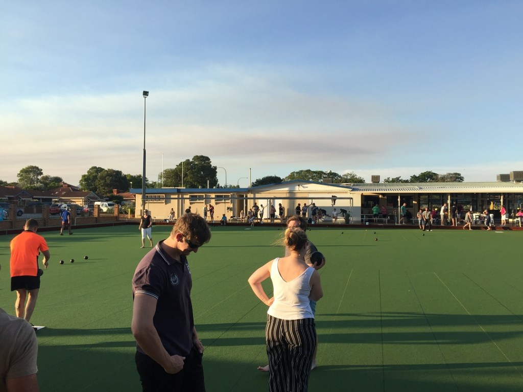 Typical Stinkin’ Hot Day at Manning Memorial for the last night of bowls for 2019 – Not only was it 36 degrees with the sun beating down at 6 frikking’ o’clock, which made it hard to see the yellow line, but out of nowhere, a fairly big Easterly kicked in from some part of the desert, creating another challenge for all the bowlers, which is only fitting, since Manning Memorial is located on Challenger Ave.