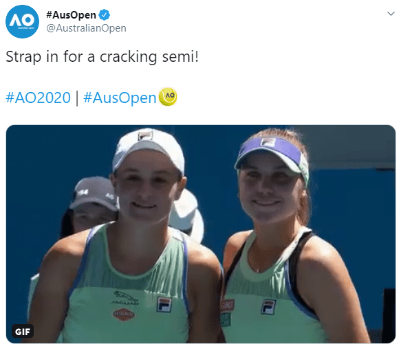 Tennis And the winner is… FILA! By JTithers on January 30, 2020 • ( Leave a comment ) I’m seeing double here – Four Ash Bartys! Share This Post: Share on X (Opens in new window) X Share on Facebook (Opens in new window) Facebook Email a link to a friend (Opens in new window) Email Like Loading... Categories: Tennis Tagged as: Ash Barty, Australia, Australian Open, Sofia Kenin, Tennis