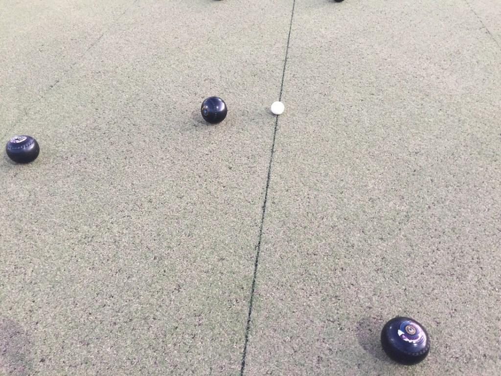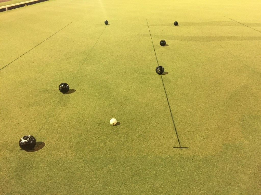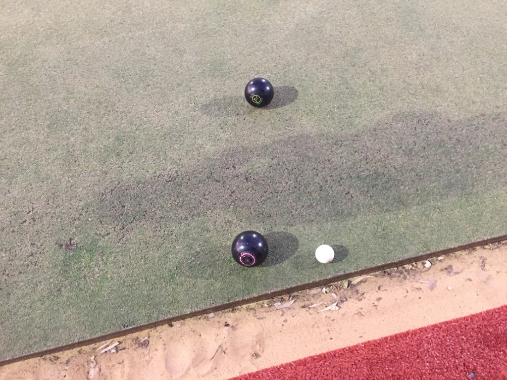 The Rocket assumed jack duties, setting up a good length, but it was skipper Garbo who was holding 1 after 4 bowlers had stepped up, only for the hold to double, when Rocket’s misfire managed to miss Garbo’s holder, take the jack, and knock it straight into the path of Jimmy and Goose’s back bowls.