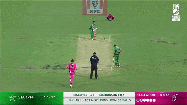 It also helped that the Thunder reverted back to type – After committing the cardinal sin of not allowing Nic Maddinson to waste 1/4 of the innings (He went for 11 off 11), the very next ball, Chris Morris got Marcus Stoinis to flick one down the leg side on 19….