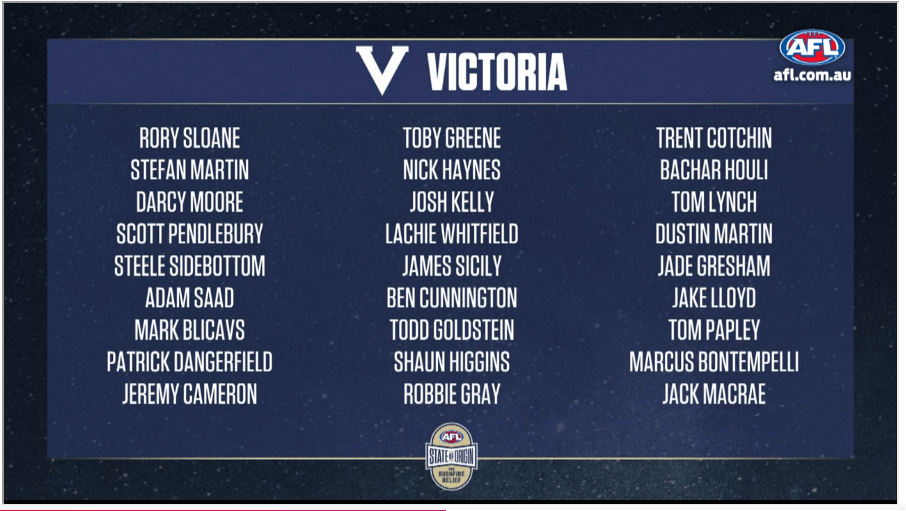 Sure the Vics have the usual daunting team (That they apparently didn’t steal from the other states this time), but I’d point out the All Stars’ midfield is a Dream Team mug’s wet dream.