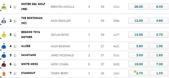 Trainer: Chris Waller, Hoop: James McDonald, 55.5kg