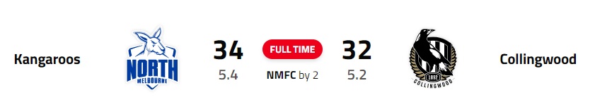 North Melbourne (8.8-56) defeated St Kilda (7.12-54) @ Marvel Stadium
