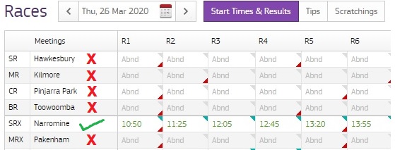 The other big COVID-19 news is that the Easter Oakbank carnival is gone, and the Queensland Winter Carnival is toast, because Racing Queensland divided the state into five different regions, where horses, trainers and jockeys will stay and race, and so they can apparently save $9 million to stay afloat.