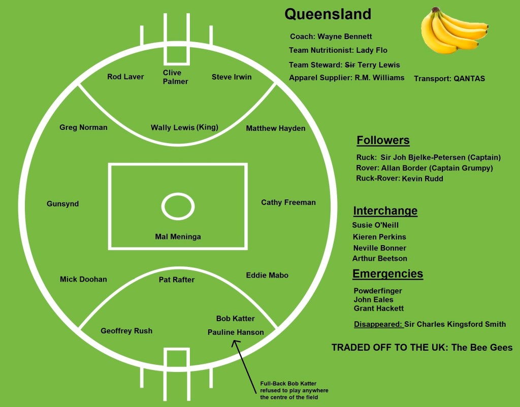 By my count, Queensland, thanks to just being themselves, had enough fruity and colourful characters to fill a team of 40, giving them a depth that even the Victorians, supposed pioneers of Australian Rules Football, are struggling to match.