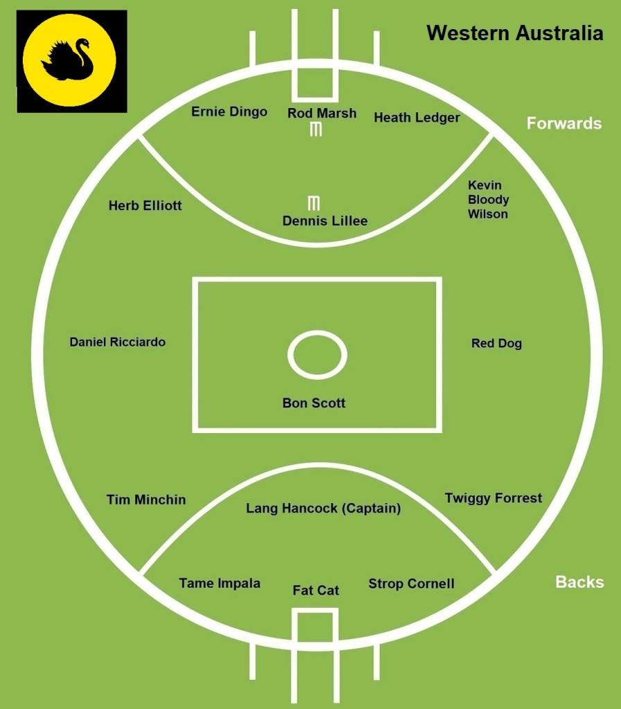 SELECTION CRITERIA: Pick an Australian rules football team based on ‘well-known individuals’ from each State, with the only exception being players from the VFL/AFL/WAFL/SANFL/NEAFL/Whatever Tasmania plays.
