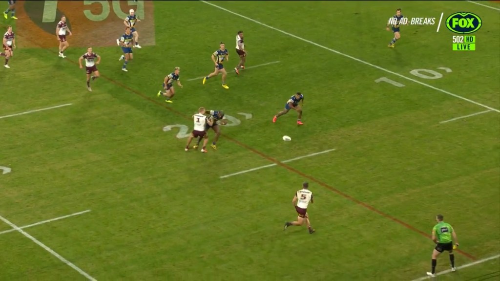 Meanwhile, Manly were on the back foot for 50 minutes against the Eels, and it was two tries either side of the half that killed them on the scoreboard, even as they ran all over the top of a tired Eels team in the last 20.