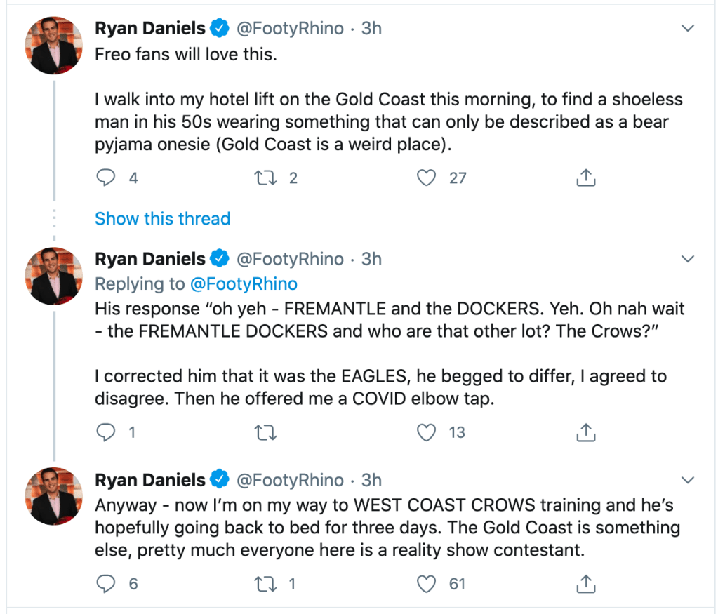 The only thing it needed to make it a true Gold Coast experience was the bloke offering Ryan a pill of foreign extraction.