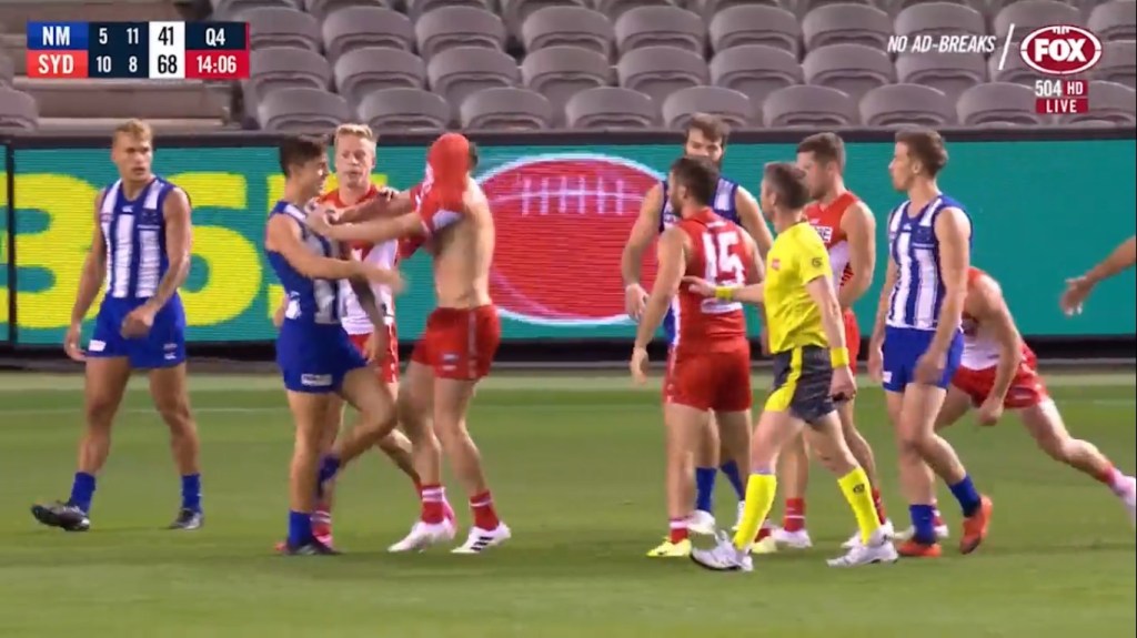 Several great pieces of individual brilliance there: The person in the Channel 7 production truck turning up the crowd noise to match the biff, and Libba slotting the goal and getting involved in the rematch.