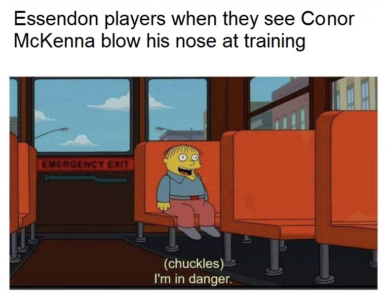 In all seriousness, hopefully Conor is coping through this rough patch… As far as errors go, breaking the AFL’s COVID protocols, blowing your nose at training, later testing positive, having unknowingly putting all of the Bombers’ first choice defenders at risk of infection and shutting down Tullamarine for a scrub down is riiiight up there.