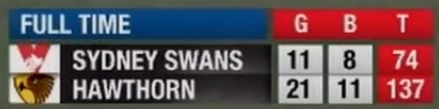 Meanwhile, after defeating GWS in Sydney, North were 2-0 and playing Sydney in a seemingly winnable game to go 3-0.