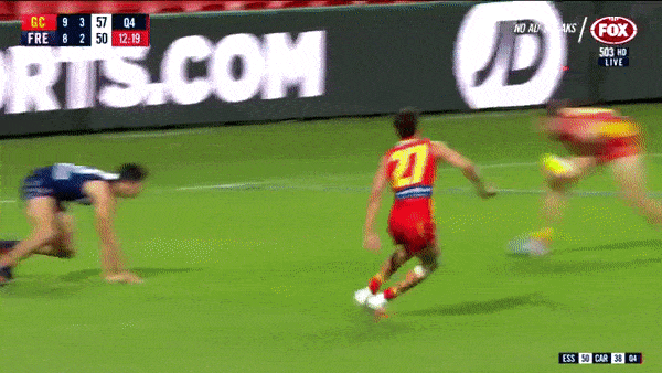 Surprise surprise, Freo struggled to kick anything in a final quarter that had all of 2 goals, one of which was Jack Lukosius goaling from a kick that was was apparently a centering ball for Alex Sexton, but if you remember Darcy Macpherson last week, this was no centering kick.