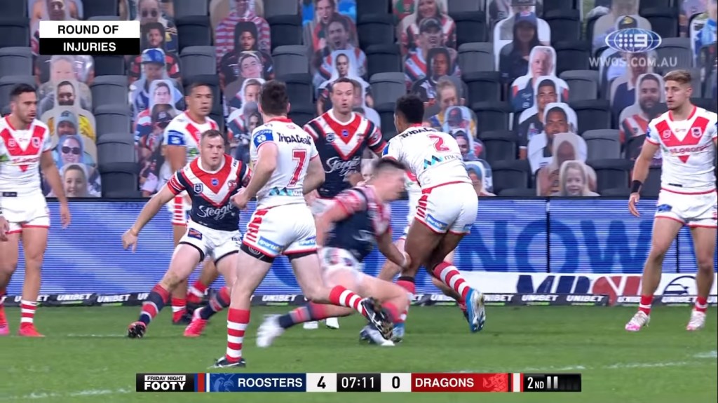 If that wasn’t bad enough for a Roosters team who were without James Tedesco, Josh Morris and Nat Butcher, the next victim of a non-contact ACL tear was Sam Verrills, in his first start for 2020, barely 10 minutes (I kid, it was roughly 14) after Radley’s injury.