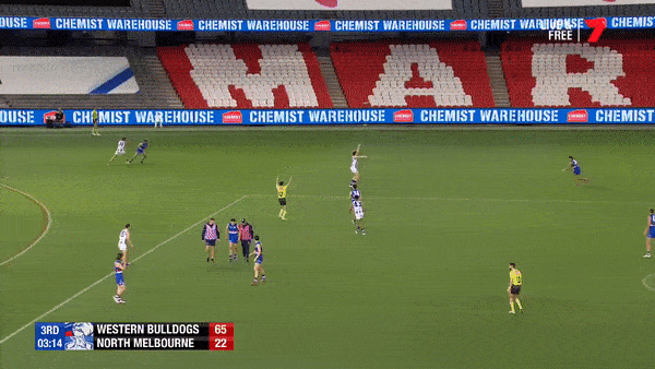 Western Bulldogs 13.9-87 defeated North Melbourne 5.8-38 defeated Josh Bruce 6.0-36 at Marvel Stadium