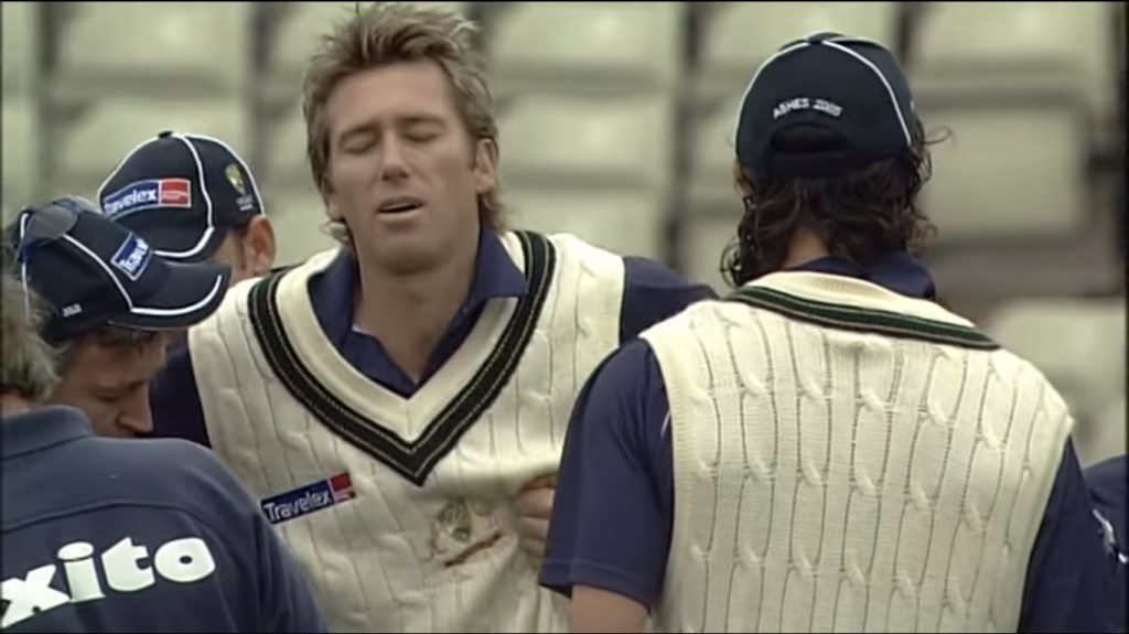 If you want to figure out exactly when Australia were up Shit Creek in the 2005 Ashes, it was right there and then, because Ricky Ponting had already decided if Australia won the toss they would bowl – They did, and without the best pace bowler in the universe, England scored 400 runs on the opening day.