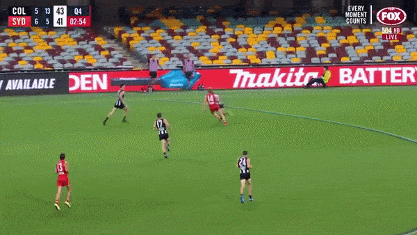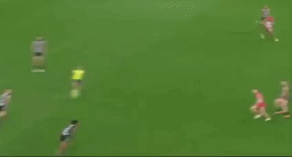 Lo and behold, after the Dogs pissed away numerous chances to really build a lead, the ladder leaders completely flipped the script in the clearance battle, and up forward, Charlie Dixon’s marking game was on full display, to the point that he took the piss with a one-handed triple juggle.