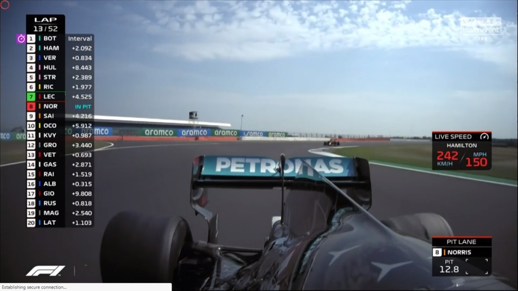 Hilariously, Verstappen was now within a second of Hamilton, and instead of being told to push up to him, the Red Bull pit wall told Max to back off slightly to cool the car to save the long-term pain, which was met, in simple terms, with a “I’m not sitting behind like a grandma.”