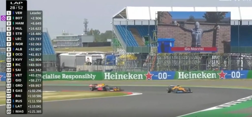 Another good move was LeClerc on Norris on Lap 20, lining the Ferrari on the outside of Aintree corner, and the Monegasque blew right past the McLaren with DRS down the Wellington Straight, as Albon popped up again at the old pit complex, rounding up Gasly at Woodcote Corner, not even needing to pass him at Copse.