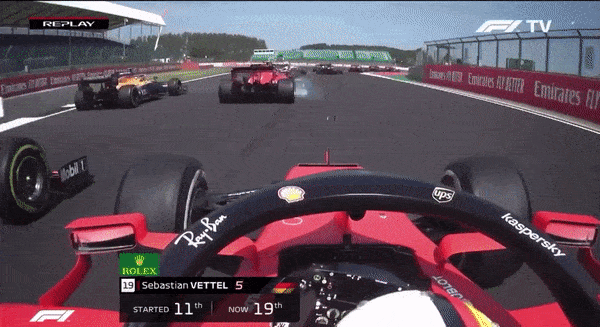 Ricciardo and Vettel both spin trying to avoid making contact with Sainz on their outside… You can tell they were teammates.