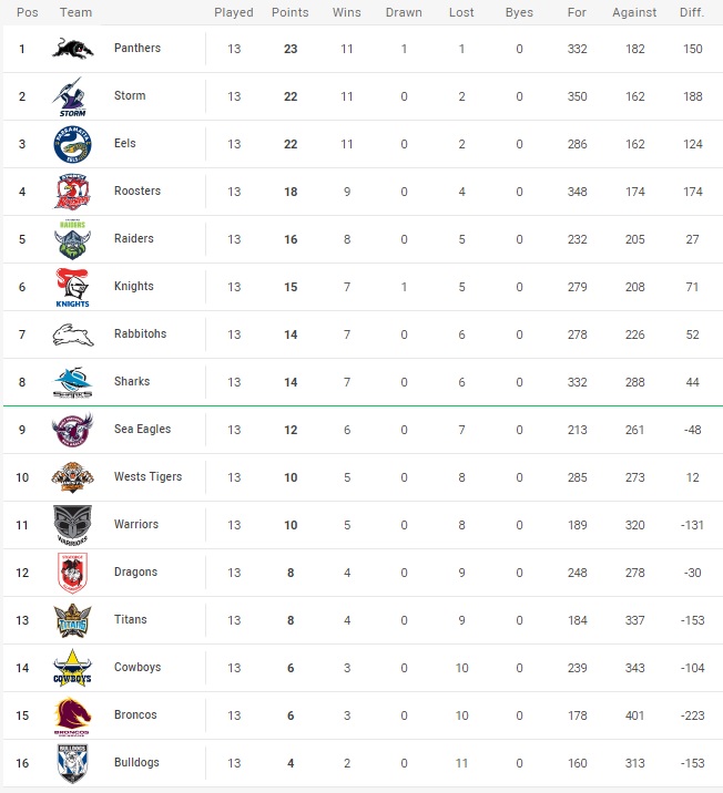 Were it not for Shaun Johnson’s bad day with the kicking tee on Sunday, the Sharks could have finished Round 13 in 5th place, but if your Aunty had privates, despite scoring more tries than the Eels, the Sharks’ big problem was that they were scored out wide, on a day where conditions were so bad that a submarine’s torpedo tube would’ve struggled with accuracy.
