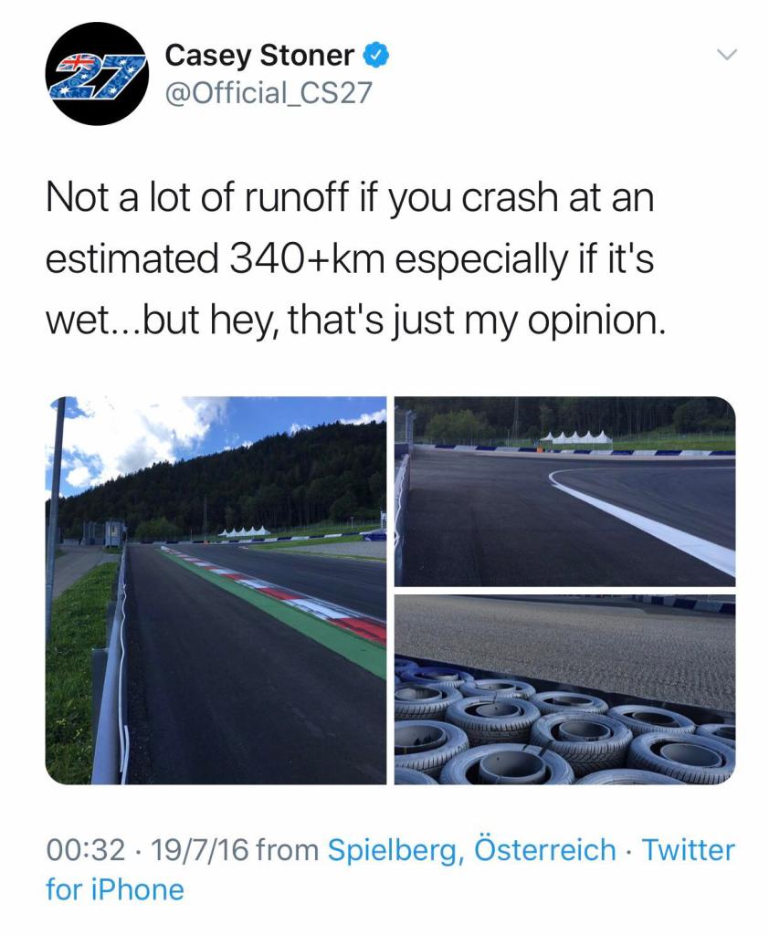 This was something Casey Stoner (When he was still Ducati’s Test rider) brought up when the Red Bull Ring returned to the World Championship in 2016, mainly focusing on the safety aspect of the high-speed Turn 3, where the Zarco-Morbidelli crash occurred.