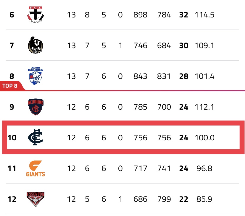 Carlton have achieved perfect balance in the universe