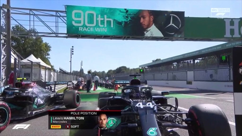 Liberty were apparently so confident about Sunday’s result, that they put up “90th Race Win” for Hamilton instead of recognising his 94th pole.
